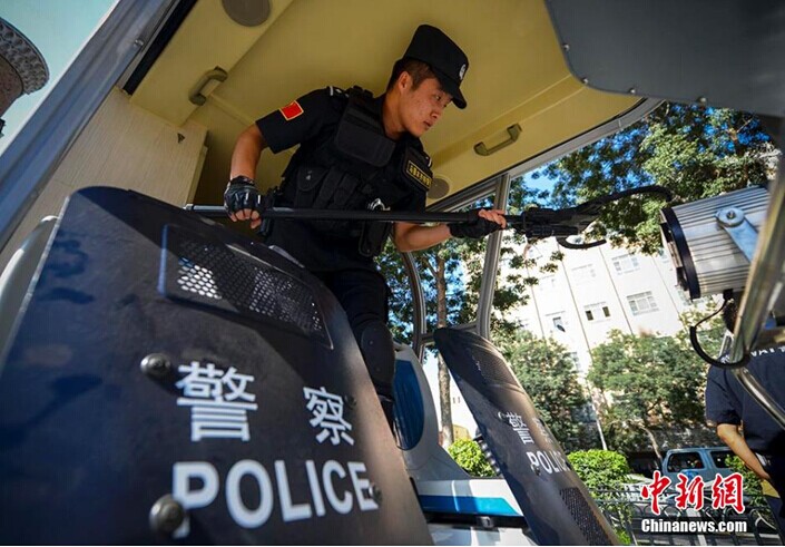 控設備,并裝備有帶聲音驅散器的特制盾牌(聲賽耳盾牌驅散器)及電擊抓捕器等單警警用器