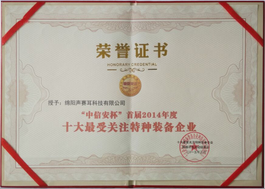 祝賀聲賽耳科技獲得十大最受關(guān)注特種裝備企業(yè)
